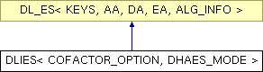 Inheritance diagram for DLIES< COFACTOR_OPTION, DHAES_MODE >: