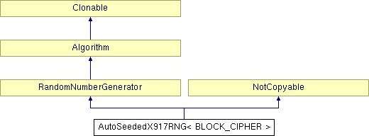 Inheritance diagram for AutoSeededX917RNG< BLOCK_CIPHER >: