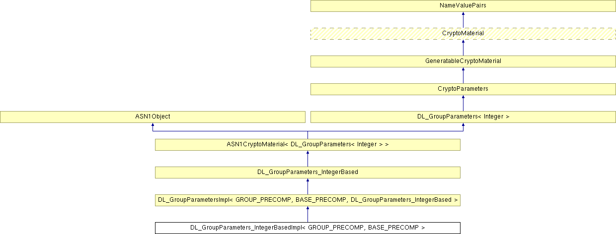 Inheritance diagram for DL_GroupParameters_IntegerBasedImpl< GROUP_PRECOMP, BASE_PRECOMP >: