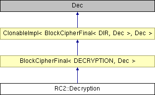 BlockCipherFinal< DECRYPTION, Dec > ClonableImpl< BlockCipherFinal< DIR, Dec >, Dec > List of all members.