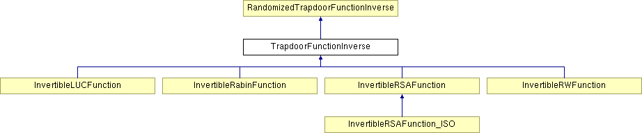 RandomizedTrapdoorFunctionInverse InvertibleLUCFunction InvertibleRabinFunction InvertibleRSAFunction InvertibleRWFunction InvertibleRSAFunction_ISO List of all members.