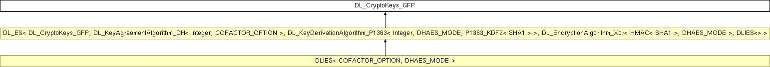 DL_ES< DL_CryptoKeys_GFP, DL_KeyAgreementAlgorithm_DH< Integer, COFACTOR_OPTION >, DL_KeyDerivationAlgorithm_P1363< Integer, DHAES_MODE, P1363_KDF2< SHA1 > >, DL_EncryptionAlgorithm_Xor< HMAC< SHA1 >, DHAES_MODE >, DLIES<> > DLIES< COFACTOR_OPTION, DHAES_MODE > List of all members.