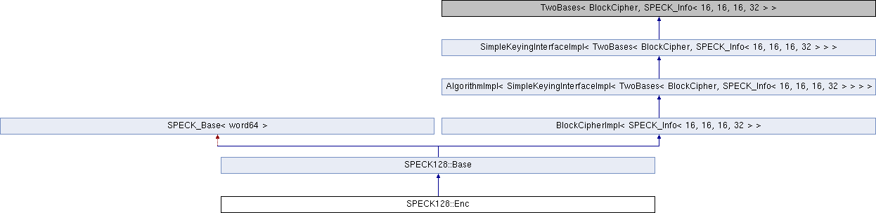 Inheritance diagram for SPECK128::Enc:Public Member Functions | |