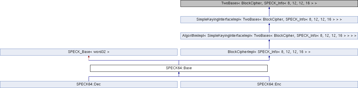 Inheritance diagram for SPECK64::Base:Public Member Functions | |