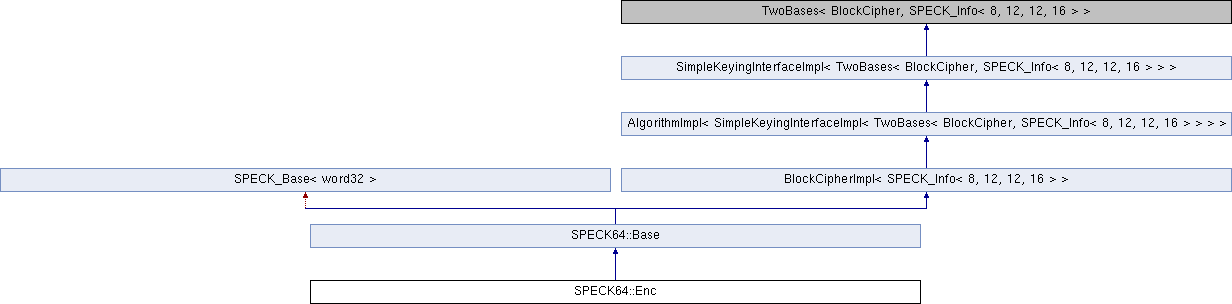 Inheritance diagram for SPECK64::Enc:Public Member Functions | |
