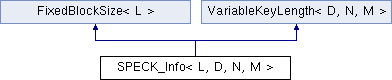 Inheritance diagram for SPECK_Info< L, D, N, M >:Static Public Member Functions | |